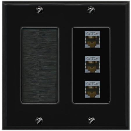 RiteAV 3 Port Cat6A Ethernet Wall Plate - Brush [Black/Black]
