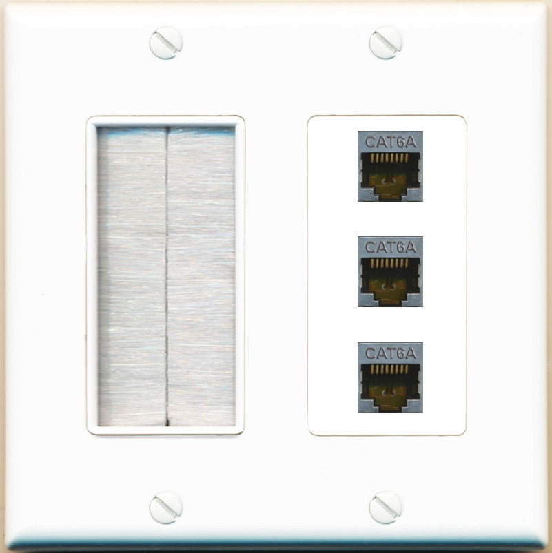 RiteAV 3 Port Cat6A Ethernet Wall Plate - Brush [White]