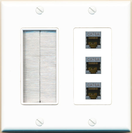 Increase quantity for RiteAV 3 Port Cat6A Ethernet Wall Plate - Brush [White]