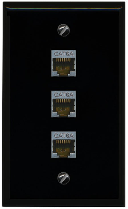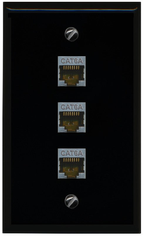 RiteAV 3 Port Cat6A Ethernet Wall Plate - Flat Style [Black/Black]