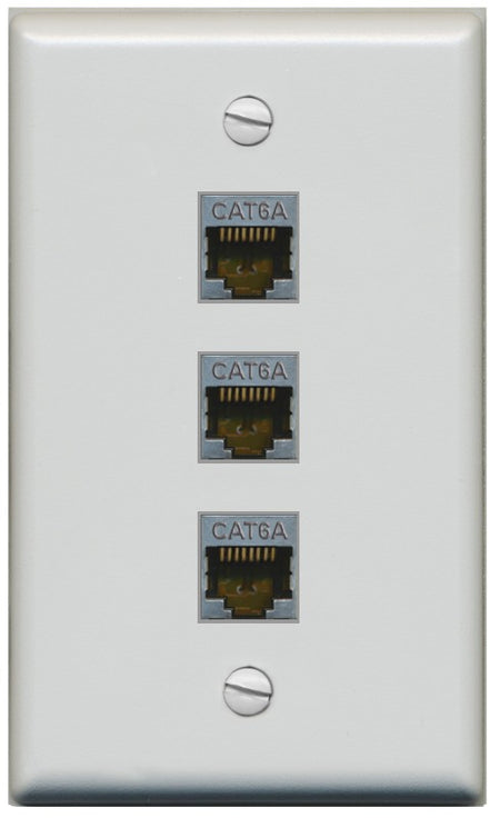 RiteAV 3 Port Cat6A Ethernet Wall Plate - Flat Style [Gray/Gray]