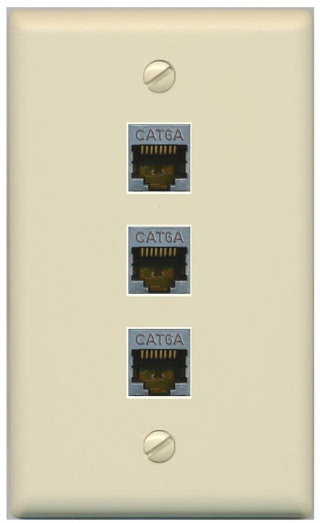 RiteAV 3 Port Cat6A Ethernet Wall Plate - Flat Style [Ivory/Ivory]