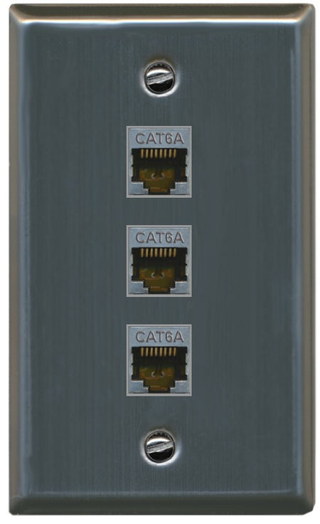 RiteAV 3 Port Cat6A Ethernet Wall Plate - Flat Style [Stainless Steel]