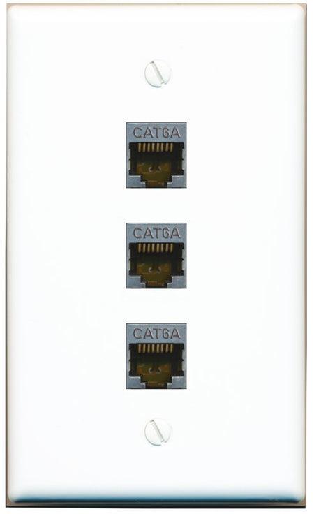 RiteAV 3 Port Cat6A Ethernet Wall Plate - Flat Style [White]