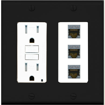 RiteAV 3 Port Cat6A Ethernet Wall Plate - GFCI Outlet [Black/White]