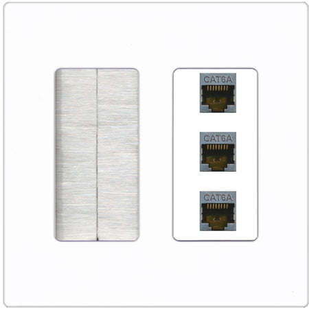 RiteAV 3 Port Cat6A Ethernet Wall Plate - Brush [Screwless White]