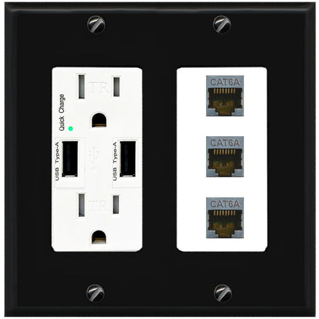 RiteAV 3 Port Cat6A Ethernet Wall Plate - USB Outlet [Black/White]