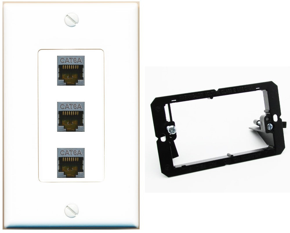 RiteAV 3 Port Cat6A Ethernet Wall Plate - Bracket [White]