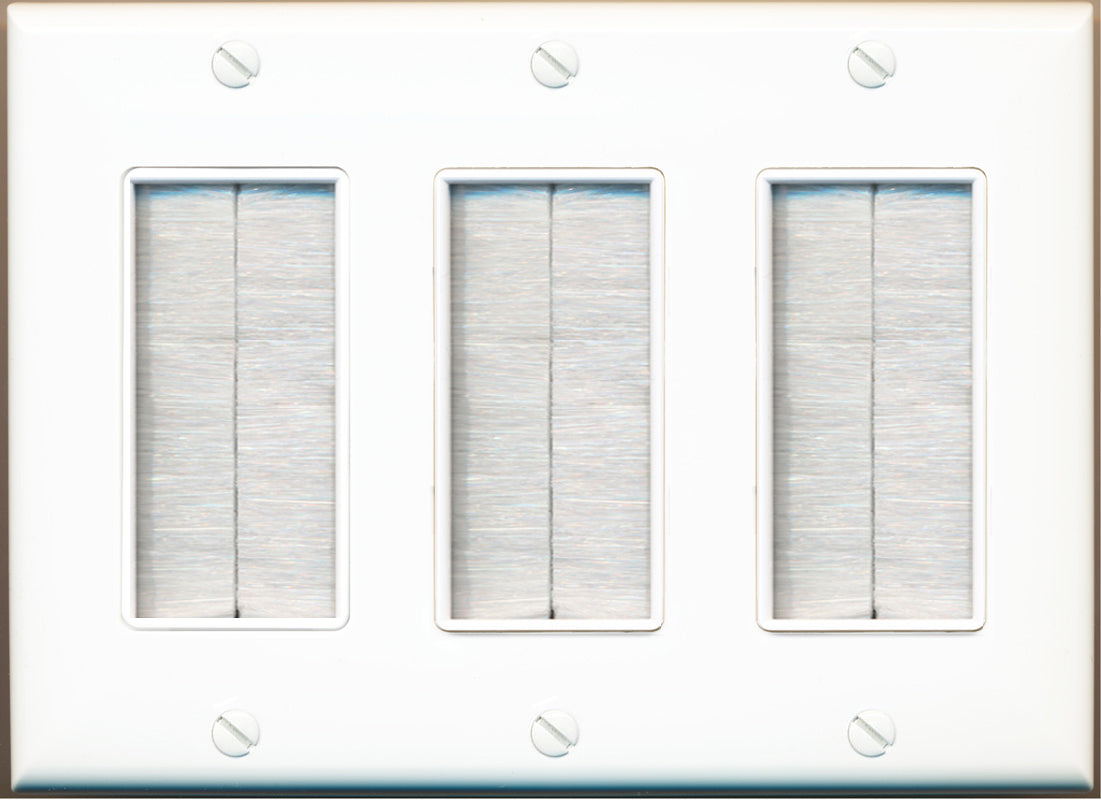 RiteAV - Triple 3 Gang Brush Wall Plate Faceplate Outlet Cable Cover with Mesh Bristles White