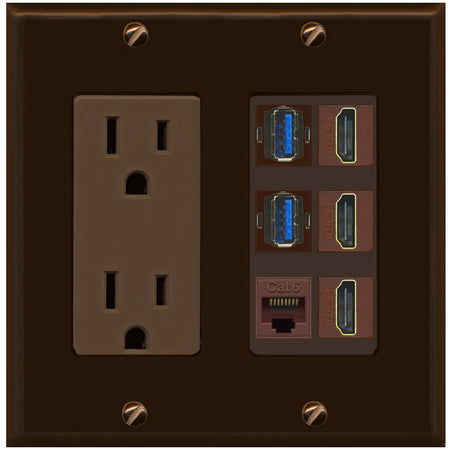RiteAV 3 Port HDMI 2 Port USB 3.0 1 CAT6-RJ45 Wall Plate - Outlet [Brown/Brown]