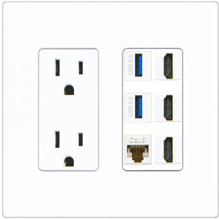 Increase quantity for RiteAV 3 Port HDMI 2 Port USB 3.0 1 CAT6-RJ45 Wall Plate - Outlet [Screwless White]