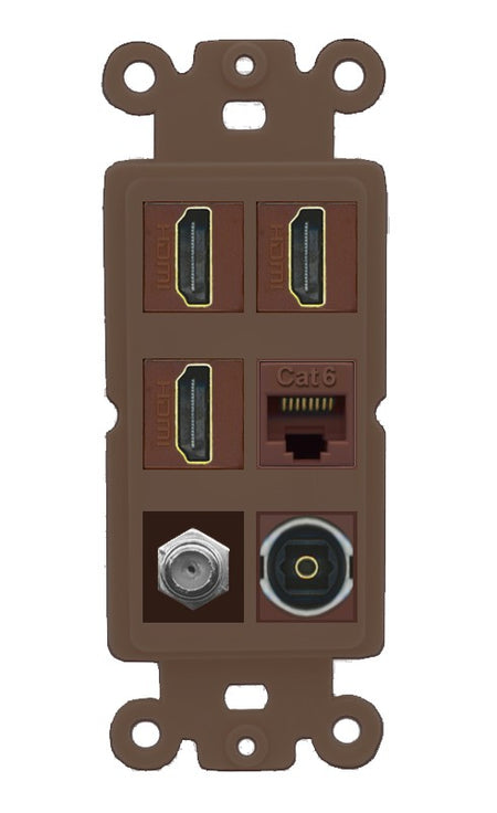 RiteAV 3 Port HDMI 1 Coax TV F-Type Cat6 Ethernet Toslink Optical Wall Plate - Rocker [Brown/Brown]