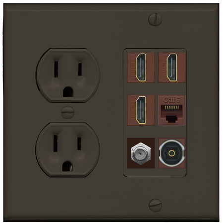 RiteAV 3 Port HDMI 1 Coax TV F-Type Cat6 Ethernet Toslink Optical Wall Plate - Round Outlet [Brown/Brown]