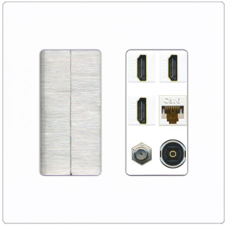 RiteAV 3 Port HDMI 1 Coax TV F-Type Cat6 Ethernet Toslink Optical Wall Plate - Brush [Screwless White]