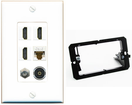 RiteAV 3 Port HDMI 1 Coax TV F-Type Cat6 Ethernet Toslink Optical Wall Plate - Bracket [White]