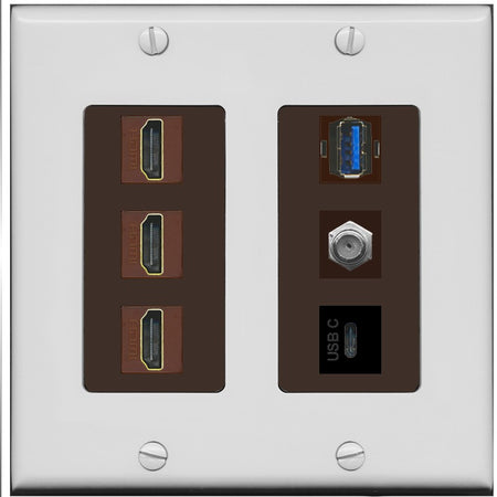 RiteAV 3 HDMI USB3 USBC Coax Wall Plate - 2 Gang [Gray/Brown]