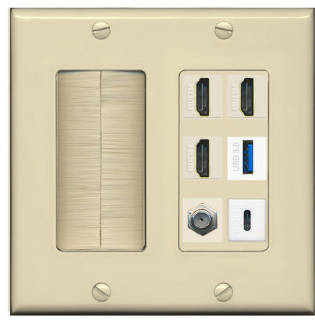 Increase quantity for RiteAV 3 HDMI USB3 USBC Coax Wall Plate - Brush [Ivory/Ivory]