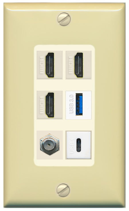 Increase quantity for RiteAV 3 HDMI USB3 USBC Coax Wall Plate - 1 Gang Decorative [Ivory/Light-Almond]