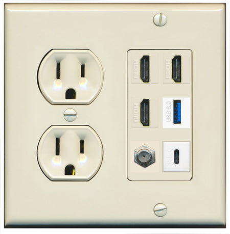 Increase quantity for RiteAV 3 HDMI USB3 USBC Coax Wall Plate - Round Outlet [Light-Almond]