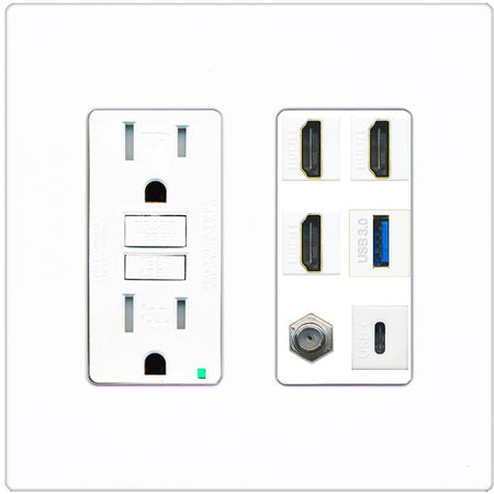 Increase quantity for RiteAV 3 HDMI USB3 USBC Coax Wall Plate - GFCI Outlet [Screwless White]