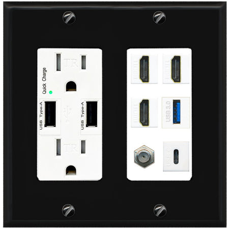 Decrease quantity for RiteAV 3 HDMI USB3 USBC Coax Wall Plate - USB Outlet [Black/White]