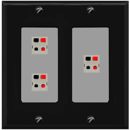 RiteAV 3 Port Speaker Wire Plug Jack Wall Plate - 2 Gang [Black/Gray]