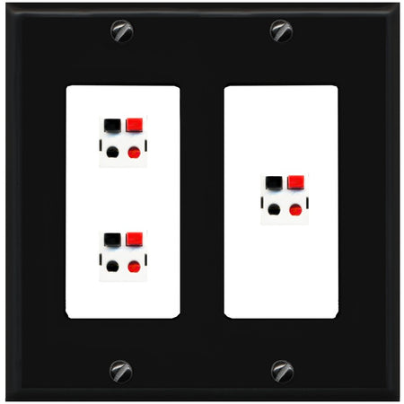 RiteAV 3 Port Speaker Wire Plug Jack Wall Plate - 2 Gang [Black/White]