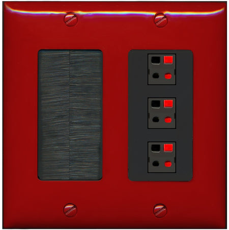 Decrease quantity for RiteAV 3 Port Speaker Wire Plug Jack Wall Plate - Brush [Red/Black]