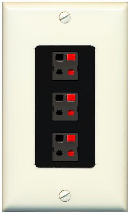RiteAV 3 Port Speaker Wire Plug Jack Wall Plate - 1 Gang Decorative [Light-Almond/Black]