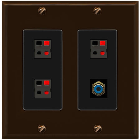 RiteAV 3 Port Speaker Wire Plug Jack Wall Plate with 1 RCA for Subwoofer - 2 Gang [Brown/Black]
