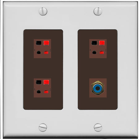 RiteAV 3 Port Speaker Wire Plug Jack Wall Plate with 1 RCA for Subwoofer - 2 Gang [Gray/Brown]