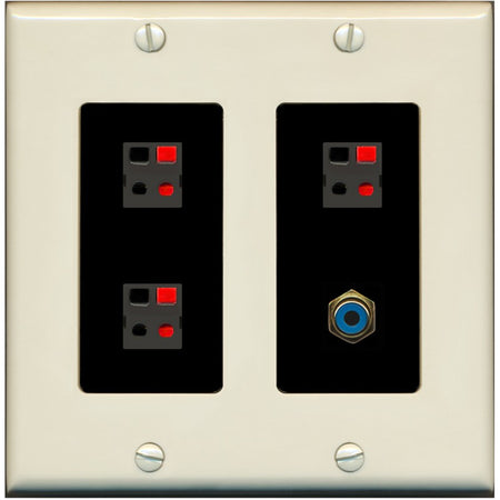 RiteAV 3 Port Speaker Wire Plug Jack Wall Plate with 1 RCA for Subwoofer - 2 Gang [Light-Almond/Black]