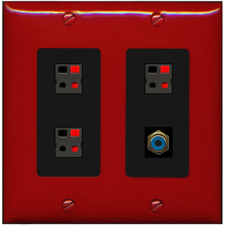 RiteAV 3 Port Speaker Wire Plug Jack Wall Plate with 1 RCA for Subwoofer - 2 Gang [Red/Black]