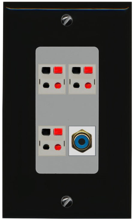 RiteAV 3 Port Speaker Wire Plug Jack Wall Plate with 1 RCA for Subwoofer - 1 Gang Decorative [Black/Gray]