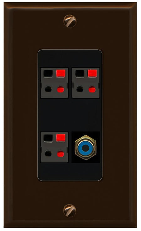 RiteAV 3 Port Speaker Wire Plug Jack Wall Plate with 1 RCA for Subwoofer - 1 Gang Decorative [Brown/Black]