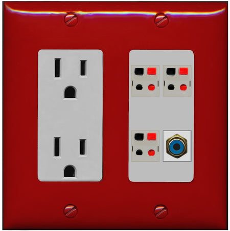 RiteAV 3 Port Speaker Wire Plug Jack Wall Plate with 1 RCA for Subwoofer - Outlet [Red/Gray]