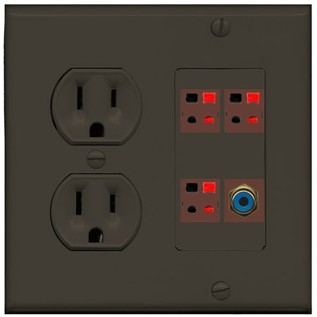 RiteAV 3 Port Speaker Wire Plug Jack Wall Plate with 1 RCA for Subwoofer - Round Outlet [Brown/Brown]