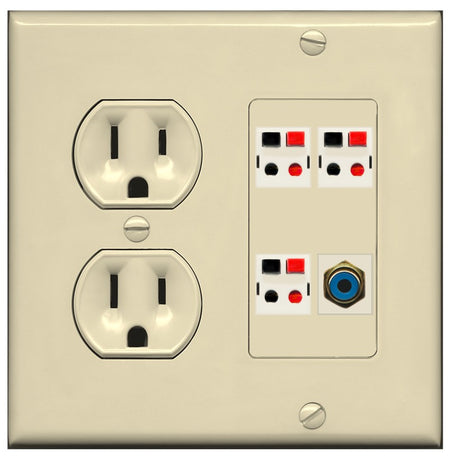 RiteAV 3 Port Speaker Wire Plug Jack Wall Plate with 1 RCA for Subwoofer - Round Outlet [Ivory/Ivory]