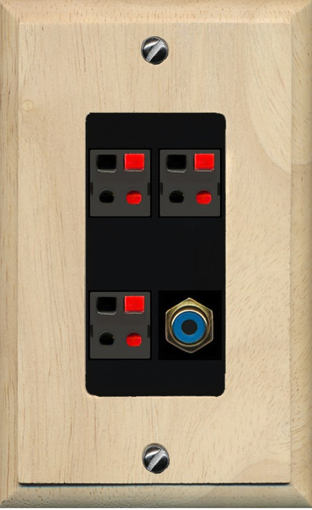 RiteAV 3 Port Speaker Wire Plug Jack Wall Plate with 1 RCA for Subwoofer - 1 Gang Decorative [Wood/Black]