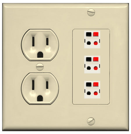 RiteAV 3 Port Speaker Wire Plug Jack Wall Plate - Round Outlet [Ivory/Ivory]