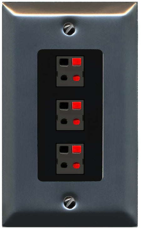 RiteAV 3 Port Speaker Wire Plug Jack Wall Plate - 1 Gang Decorative [Stainless/Black]