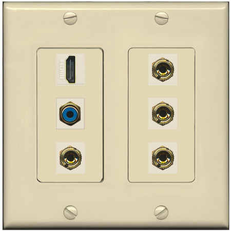 RiteAV 2 Speaker 4 Banana Binding Post HDMI RCA Wall Plate - 2 Gang [Ivory/Ivory]