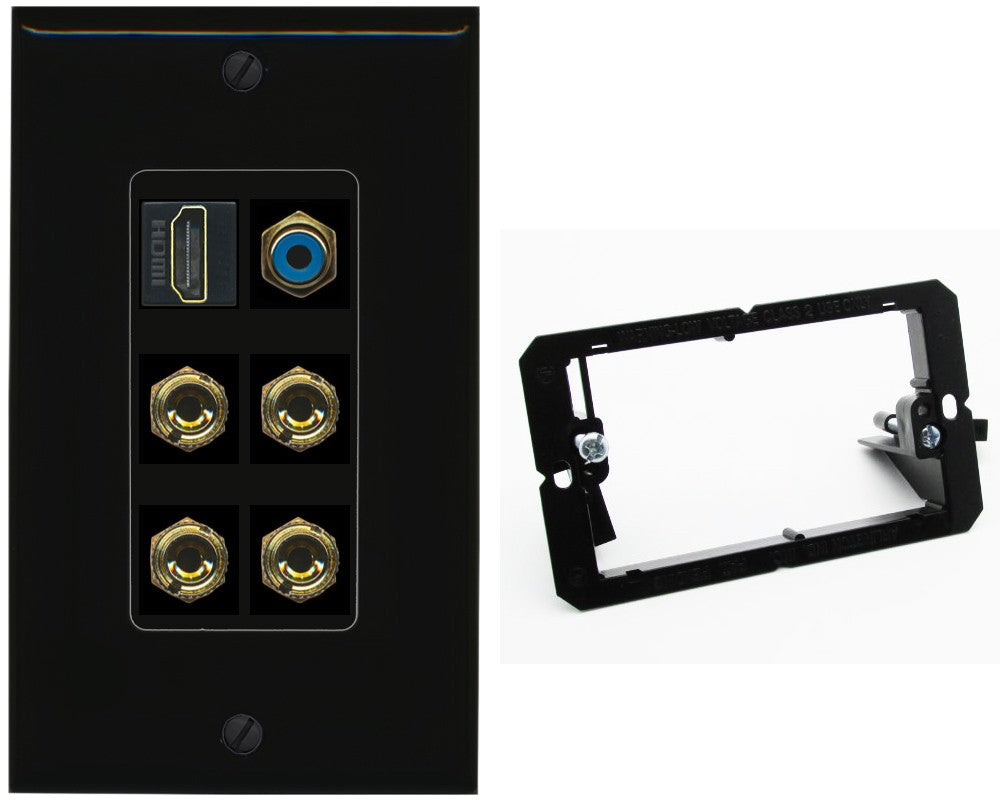 RiteAV 2 Speaker 4 Banana Binding Post HDMI RCA Wall Plate - Bracket [Black/Black]
