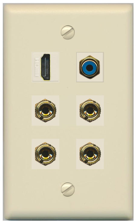 RiteAV 2 Speaker 4 Banana Binding Post HDMI RCA Wall Plate - Flat Style [Ivory/Ivory]