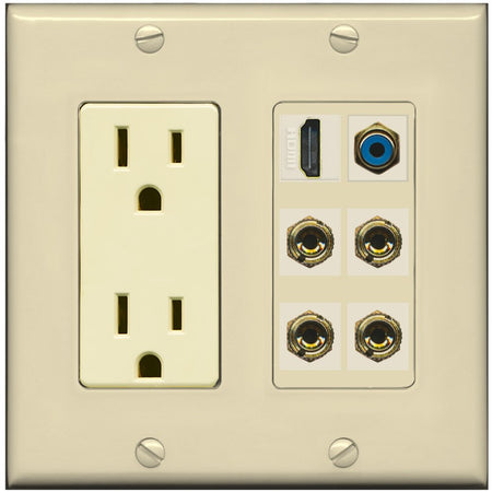 RiteAV 2 Speaker 4 Banana Binding Post HDMI RCA Wall Plate - Outlet [Ivory/Ivory]