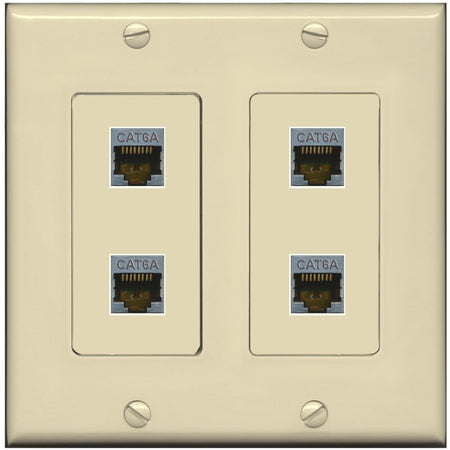 RiteAV - 4 Port Cat6A Ethernet Wall Plate - 2 Gang [Ivory/Ivory]