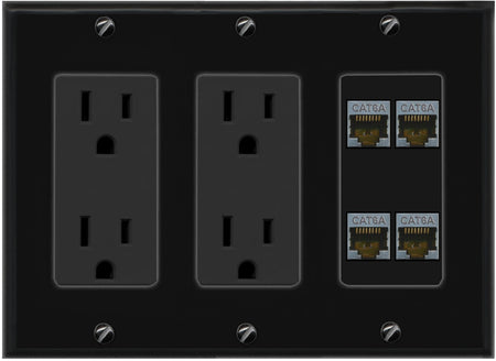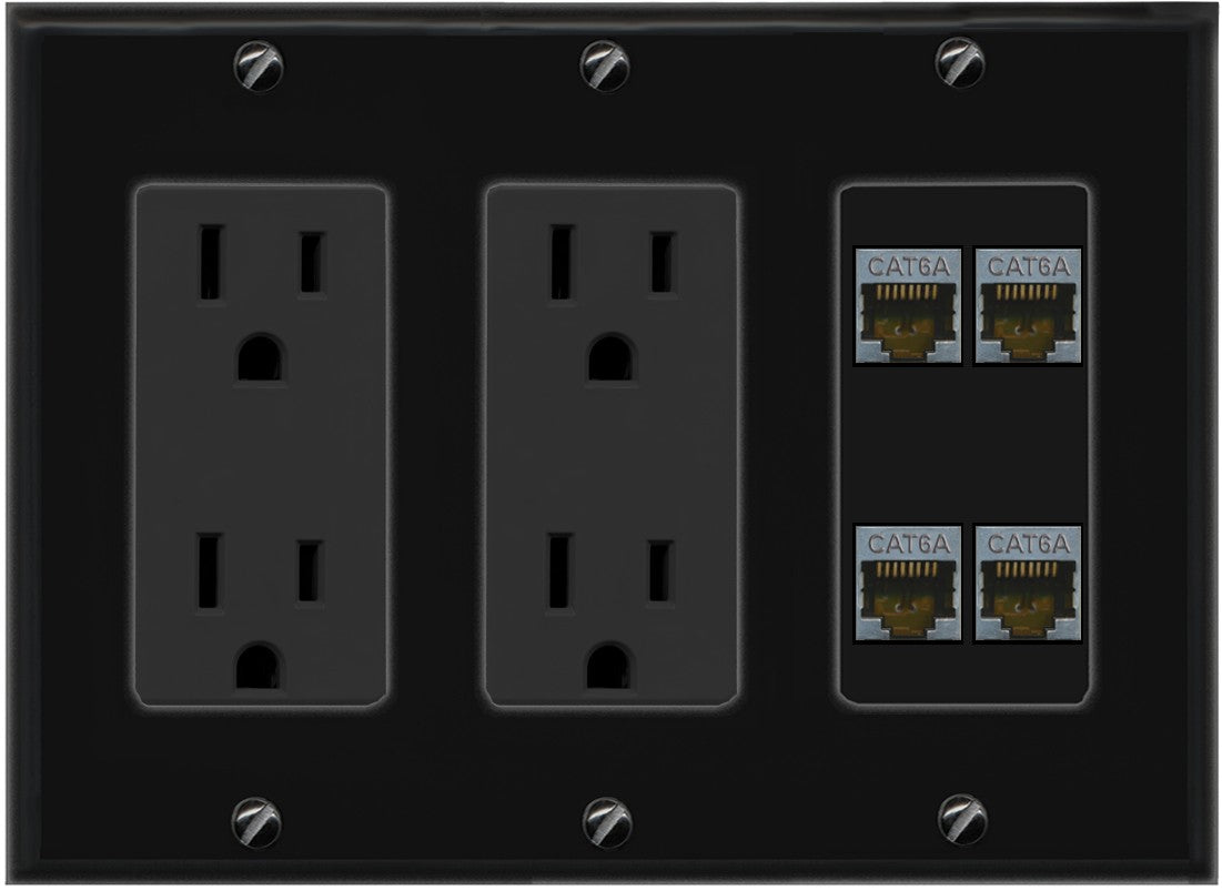 RiteAV - 4 Port Cat6A Ethernet Wall Plate - 3 Gang 2 Outlet [Black/Black]
