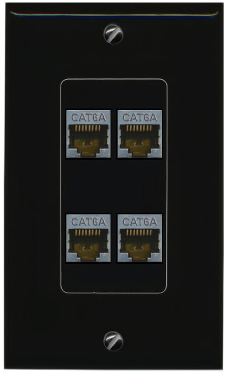 RiteAV - 4 Port Cat6A Ethernet Wall Plate - 1 Gang Decorative [Black/Black]