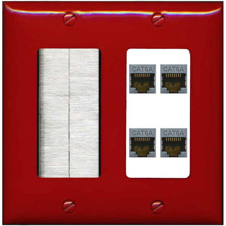 RiteAV - 4 Port Cat6A Ethernet Wall Plate - Brush [Red/White]