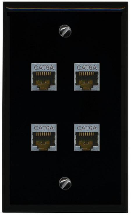 RiteAV - 4 Port Cat6A Ethernet Wall Plate - Flat Style [Black/Black]
